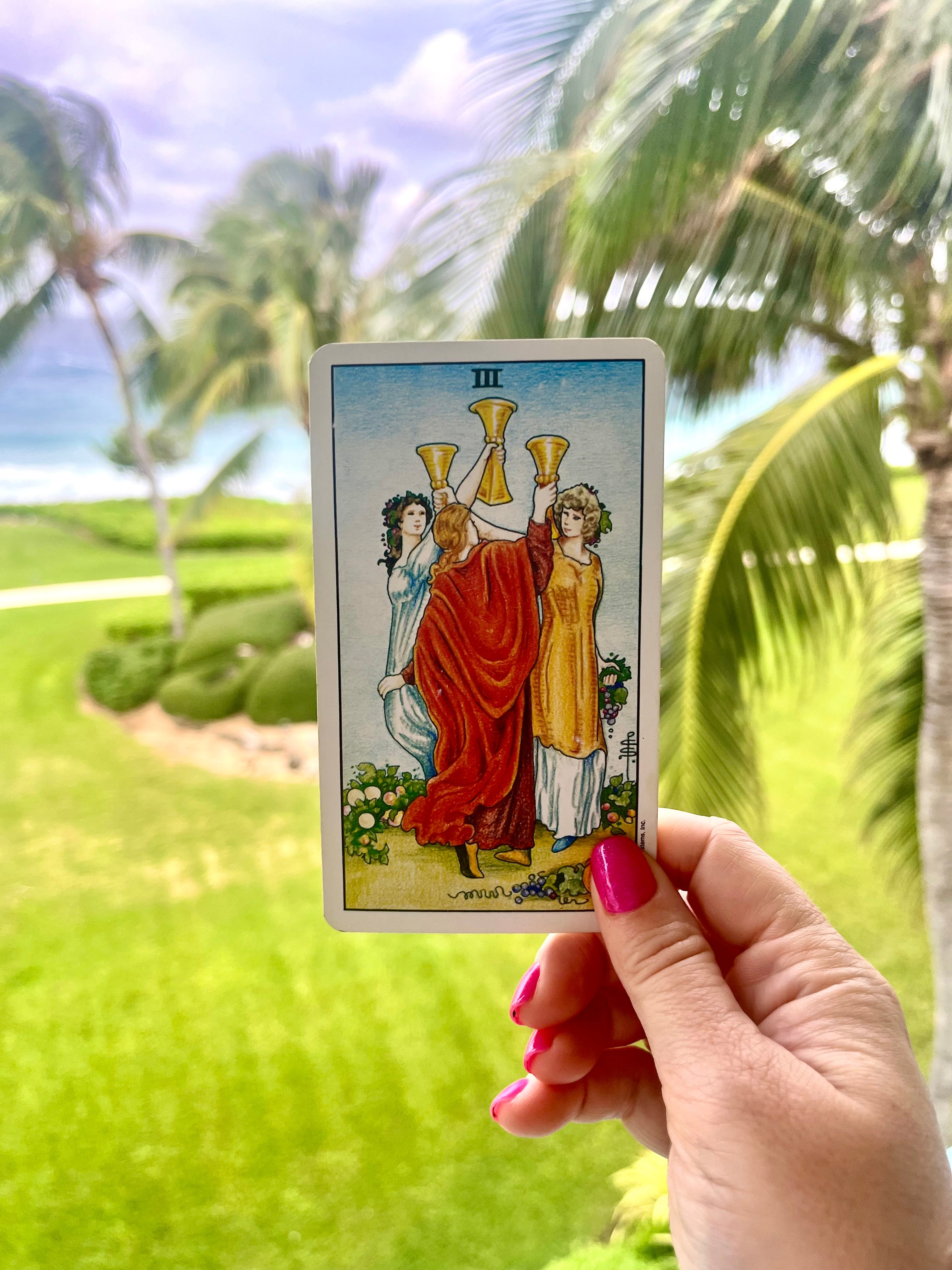 The Three of Cups is a happy joyous card about spending time with friends and family and celebrating with loved ones. As we approach the holiday season, with all its busyness and gift-giving, the card reminds us that the true gift is our relationships with others. In times where much of our social interaction is online, try to gather in person with others as much as possible; nothing can replace spending time in the presence of those we love. Of course, this is not always possible, nor are we always fond of those whom the holidays bring into our midst. ;) It is good to have compassion for yourself and others when dealing with difficult personalities, try to not let your ego become engaged, and allow yourself to sense the presence of the other, as well as your own. Find those moments of stillness and soak up the warmth and camaraderie of the season where you can.